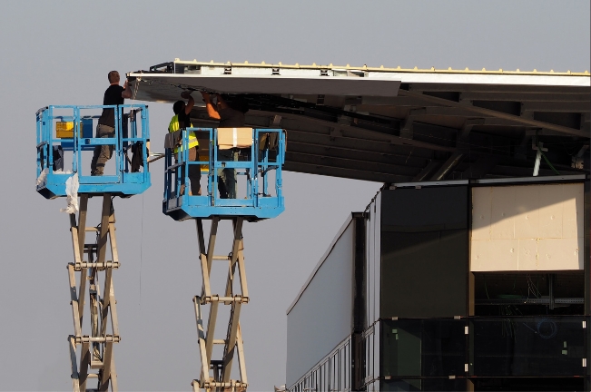 An aerial work platform elevates personnel for tasks at height, commonly used in construction, maintenance, and warehouse inventory management for safety and accessibility.