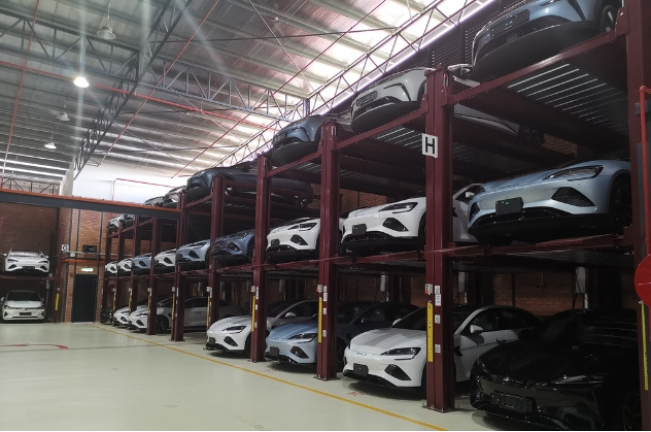 Automated car park systems maximize space by stacking cars vertically or horizontally, using mechanical platforms to efficiently manage parking in limited urban spaces.